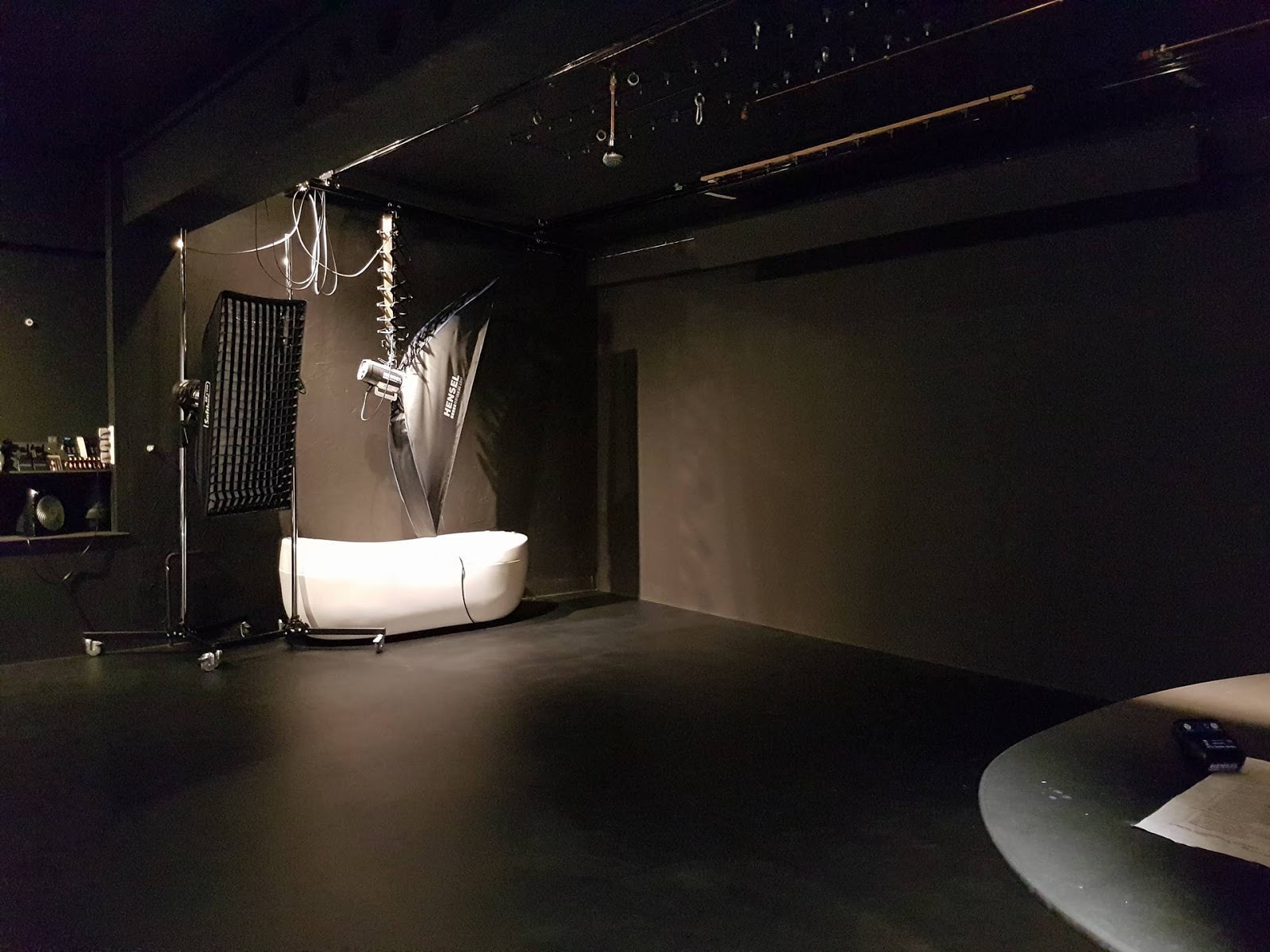You can rent the smallest studio (40 qm) as a black box studio with a seamless backdrop (white and black) or use it for water photo shootings.
